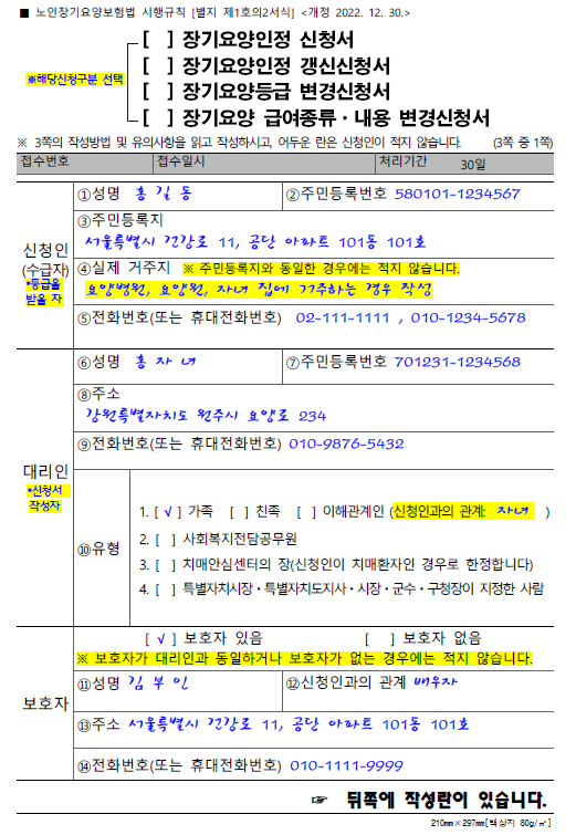 📌 장기요양 신청서 예시를 참조하시어 작성하시면 빠르게 작성 가능합니다.