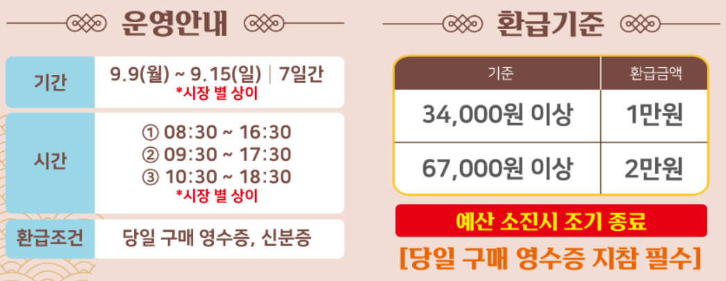 ✅ 전통시장 온누리 상품권 환급행사 : 9.11(수) ~ 9.15(일)