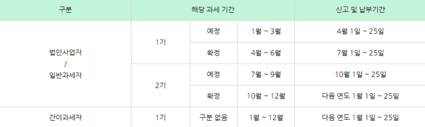 많은 분들이 2025년 1월에 신고를 진행하기 때문에 이를 2025년 1기 신고라고 알고 계시지만, 2025년 1월에 진행되는 부가세 신고는 2024년 2기 부가세 신고임을 반드시 유념하시기 바랍니다.